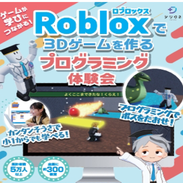 小学1年生から参加可能!ロブロックスの世界でプログラミングを学ぶコースです。自分だけのゲームを作ろう! 触れやすいビジュアルプログラミングから始め、最終的に本格的なプログラミング言語まで学ぶコースです。